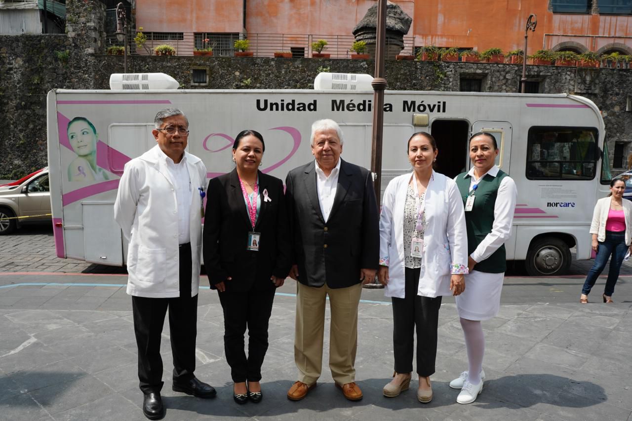 En la explanada del Tribunal Superior de Justicia del Estado de Morelos (TSJEM), sede Leyva, fue instalada una Unidad Médica Móvil del Instituto Mexicano del Seguro Social (IMSS), en la que se realizaron mastografías a mujeres trabajadoras y jubiladas de este Poder Judicial, en el marco de este 19 de octubre “Día mundial de la lucha contra el cáncer de mama”.