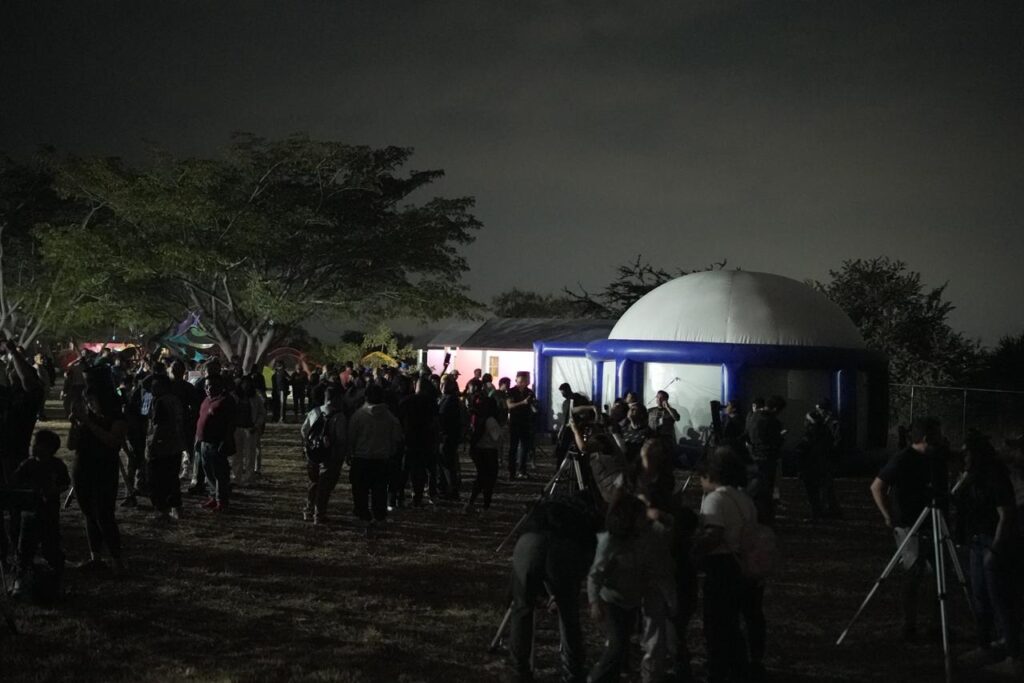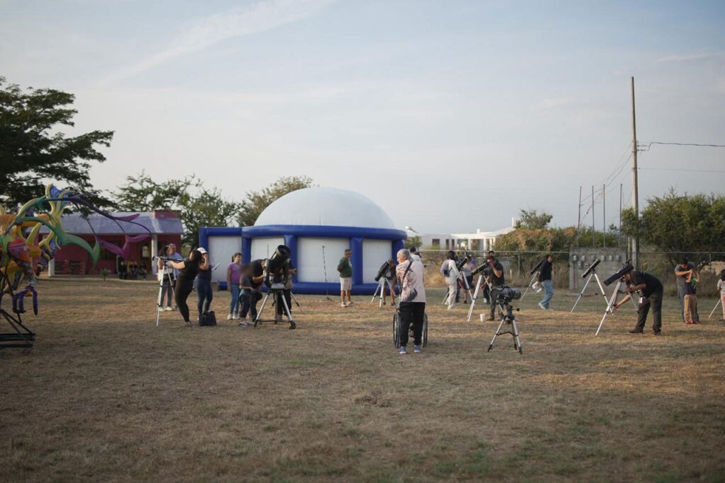 El Consejo de Ciencia y Tecnología del Estado de Morelos (CCyTEM), mediante el Centro Morelense de Comunicación de la Ciencia (CeMoCC), coordinó talleres, demostraciones científicas, música, danza folklórica y un planetario móvil. Durante cinco horas, 120 telescopios facilitaron la observación del cielo sin pausa, lo que permitió a niñas, niños y juventudes mirar de cerca la bóveda celeste por primera vez desde su propio municipio.