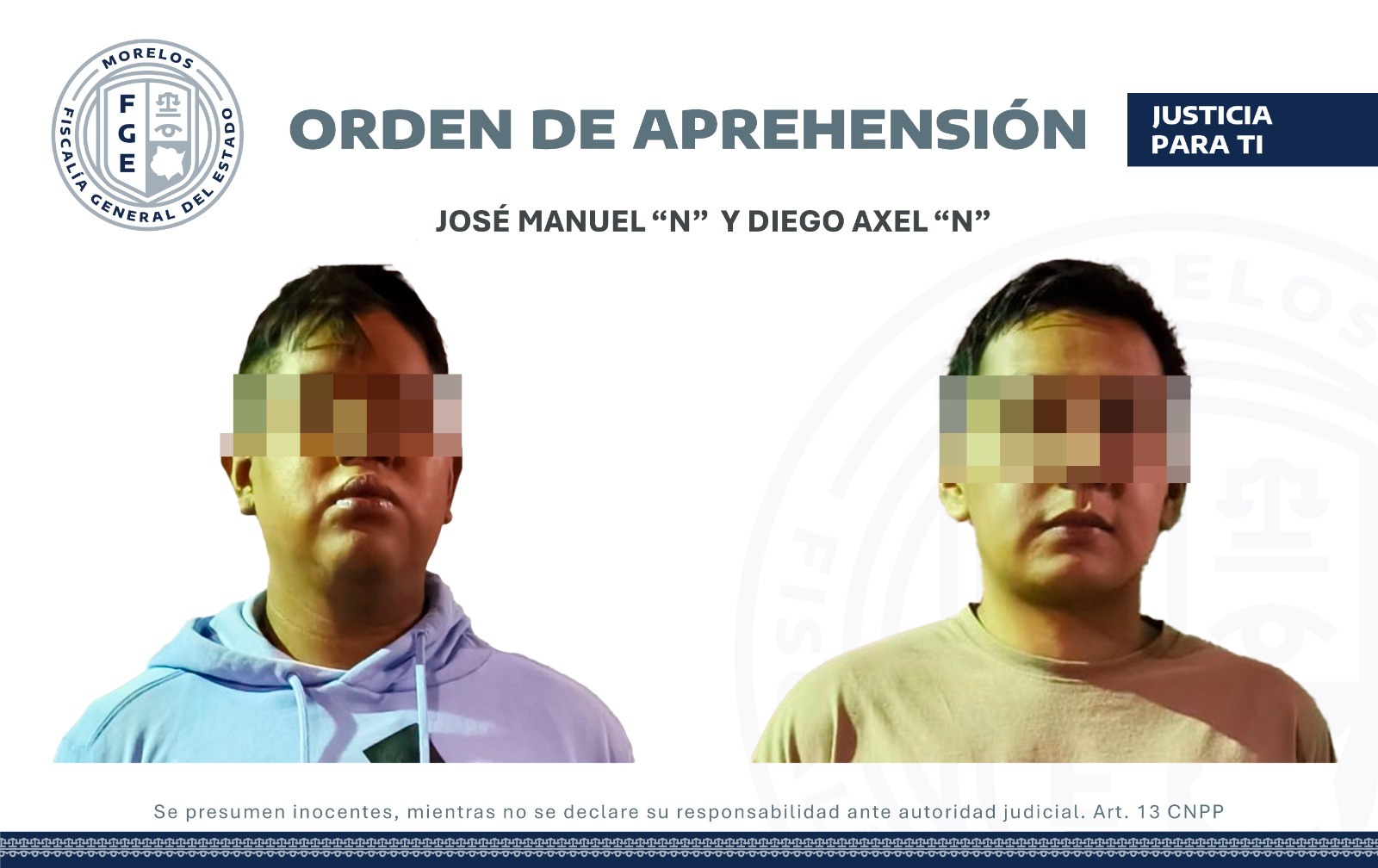 Tras lo ocurrido, la víctima inició su denuncia ante el agente del Ministerio Público de la Unidad Especializada en la Investigación de Delitos Sexuales, quien determinó la probable responsabilidad de Diego Axel “N” y José Manuel “N”, por lo que solicitó y obtuvo del juez la orden de aprehensión en su contra, cumplimentada por la A