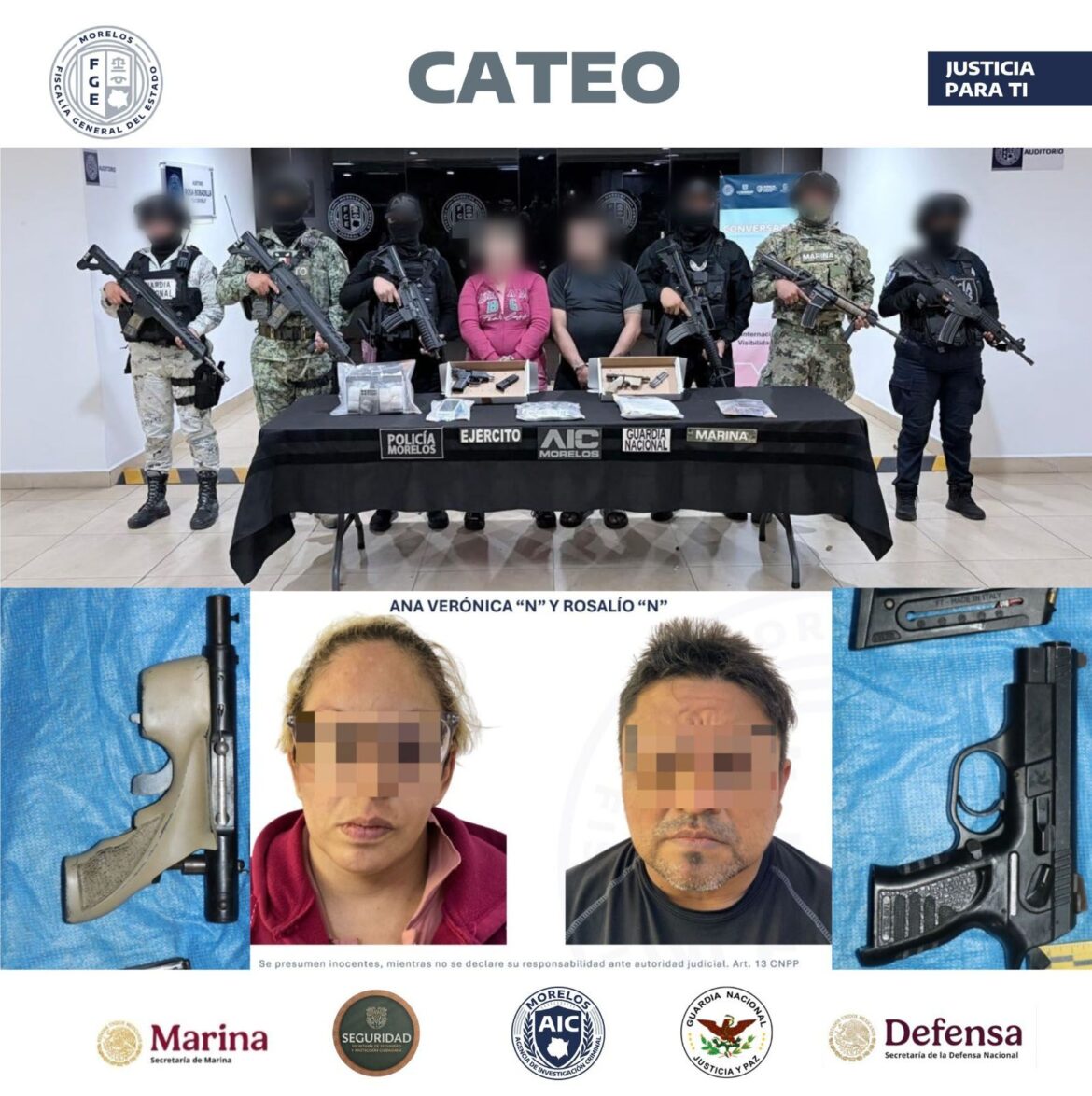Derivado del operativo se detuvo a Rosalío “N” y Ana Verónica “N”, quienes quedaron a disposición del Ministerio Público (MP) especializado para ser investigados por los delitos de trata de personas en su modalidad de explotación sexual, contra la salud y posesión de arma de fuego.
