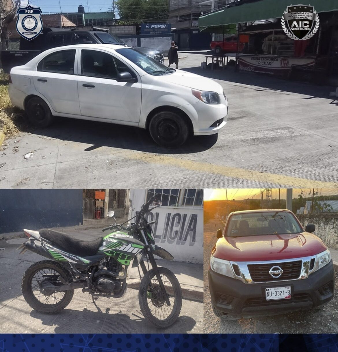 La inspección preliminar arrojó que tanto el Chevrolet Aveo como la Nissan NP300 presentaron alteraciones en sus números de identificación, mientras que el sistema Plataforma México confirmó que la motocicleta Italika contaba con reporte de robo vigente, generado en la zona Metropolitana de nuestra entidad.