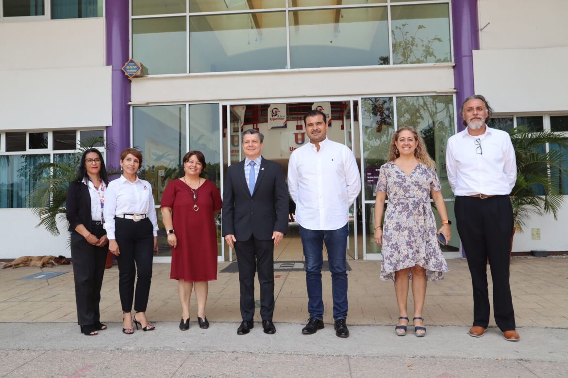 El alcalde David Ortiz acudió a la instalaciones de la Universidad Politécnica del Estado de Morelos (UPEMOR) para compartir con el rector Arturo Mazari Espín, así como con personal docente y administrativo sobre el acuerdo que tomaron los integrantes del Ayuntamiento de Jiutepec para exentar del pago del impuesto predial de los años 2022, 2023 y 2024 a la institución educativa.