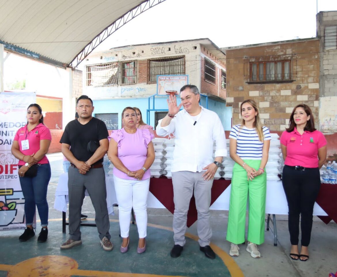 El alcalde Rafael Reyes encabezó, la tarde de este viernes, la cuarta jornada del programa “Comedor Comunitario Rodante Jiutepec” a través del cual el Sistema para el Desarrollo Integral de la Familia (DIF) entrega gratuita de raciones alimentarias calientes a personas en situación vulnerable.