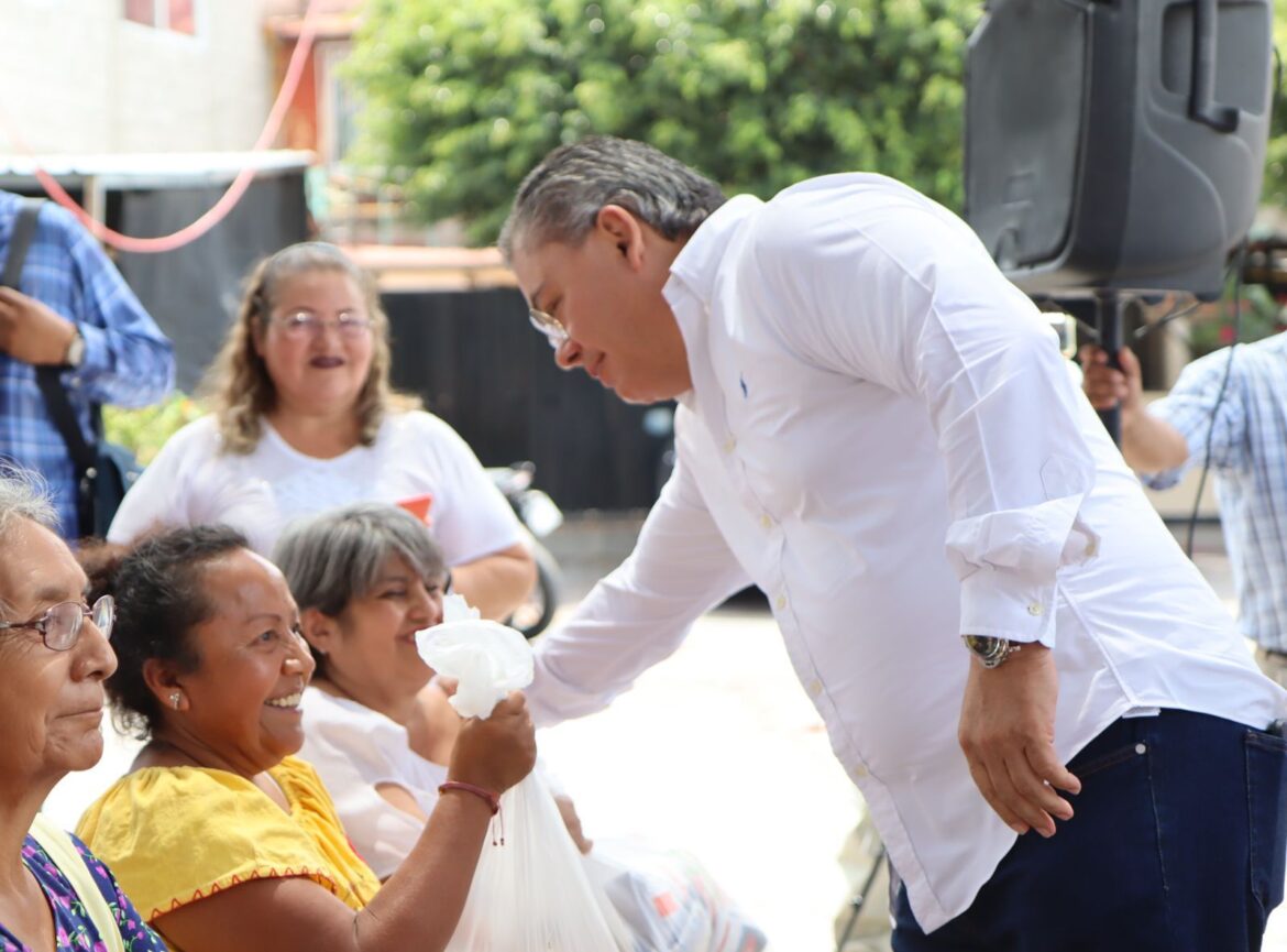 Para contribuir a garantizar el derecho que tienen las personas a una alimentación nutritiva, suficiente y de calidad, el medio día de este viernes el alcalde Rafael Reyes e integrantes del Ayuntamiento de Jiutepec entregaron despensas a 120 vecinos de la unidad habitacional El Paraje «El Texcal».