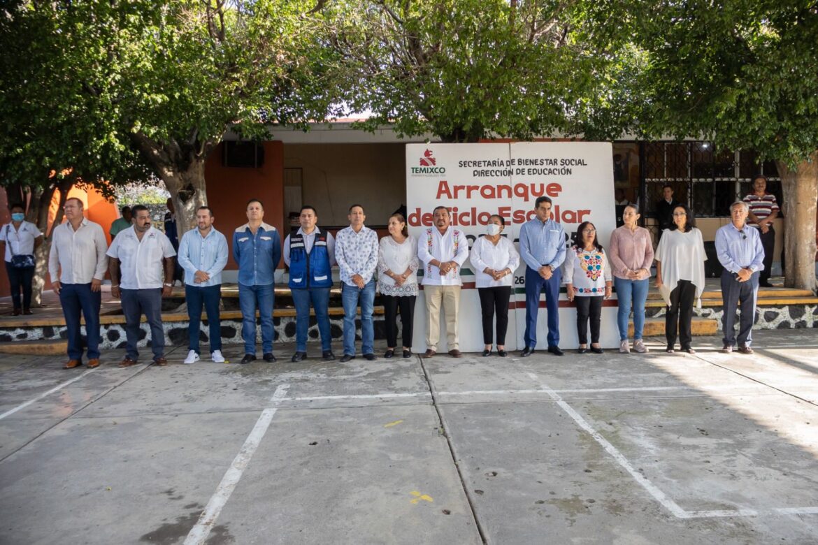 La presidenta municipal de Temixco Juanita Ocampo Domínguez encabezó en compañía del síndico municipal Andrés Duque Tinoco, integrantes del Cabildo y gabinete inauguraron el ciclo escolar 2024- 2025 en la Escuela Primaria “Rafael Ramírez”, ubicada en la colonia centro del municipio donde felicitó a cada uno de los estudiantes por iniciar una nueva etapa en un grado diferente, con nuevos retos educativos pero que mediante la disciplina y perseverancia podrán logras sus objetivos.
