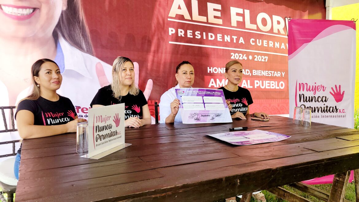 Ale Flores, candidata a la alcaldía de Cuernavaca por la Coalición Sigamos Haciendo Historia, se comprometió a emprender acciones para prevenir y erradicar la violencia de género durante su gobierno, al firmar el Pacto Electoral y de Género, en su segunda edición, con la asociación «Mujer Nunca Permitas».