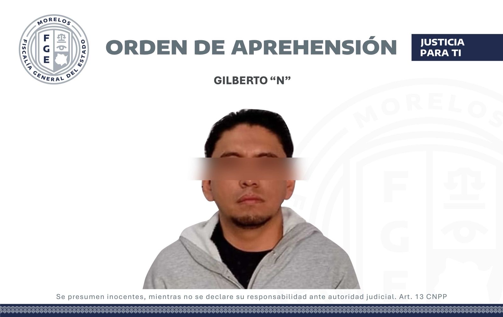 El masculino fue asegurado en la colonia Emiliano Zapata, en el municipio de Jojutla, para que comparezca en las próximas horas ante el juez que lo requiere.