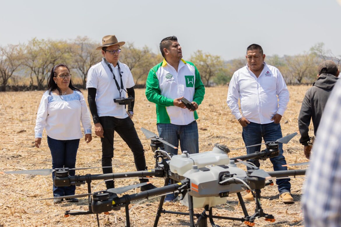 El director de Desarrollo Agropecuario Ing. Hugo Alemán detalló que de acuerdo a la muestra que se realizó para el uso de dron en el campo temixquense, la fumigación y el riego son 50 veces más rápidos con estos equipos, refirió la importancia de aprovechar las bondades de la tecnología para aumentar la eficiencia, además, es ideal para la reducción del impacto ambiental que es causado en la actualidad por la actividad agrícola, ya que se consumen menos recursos no renovables, utilizando solo energías limpias.