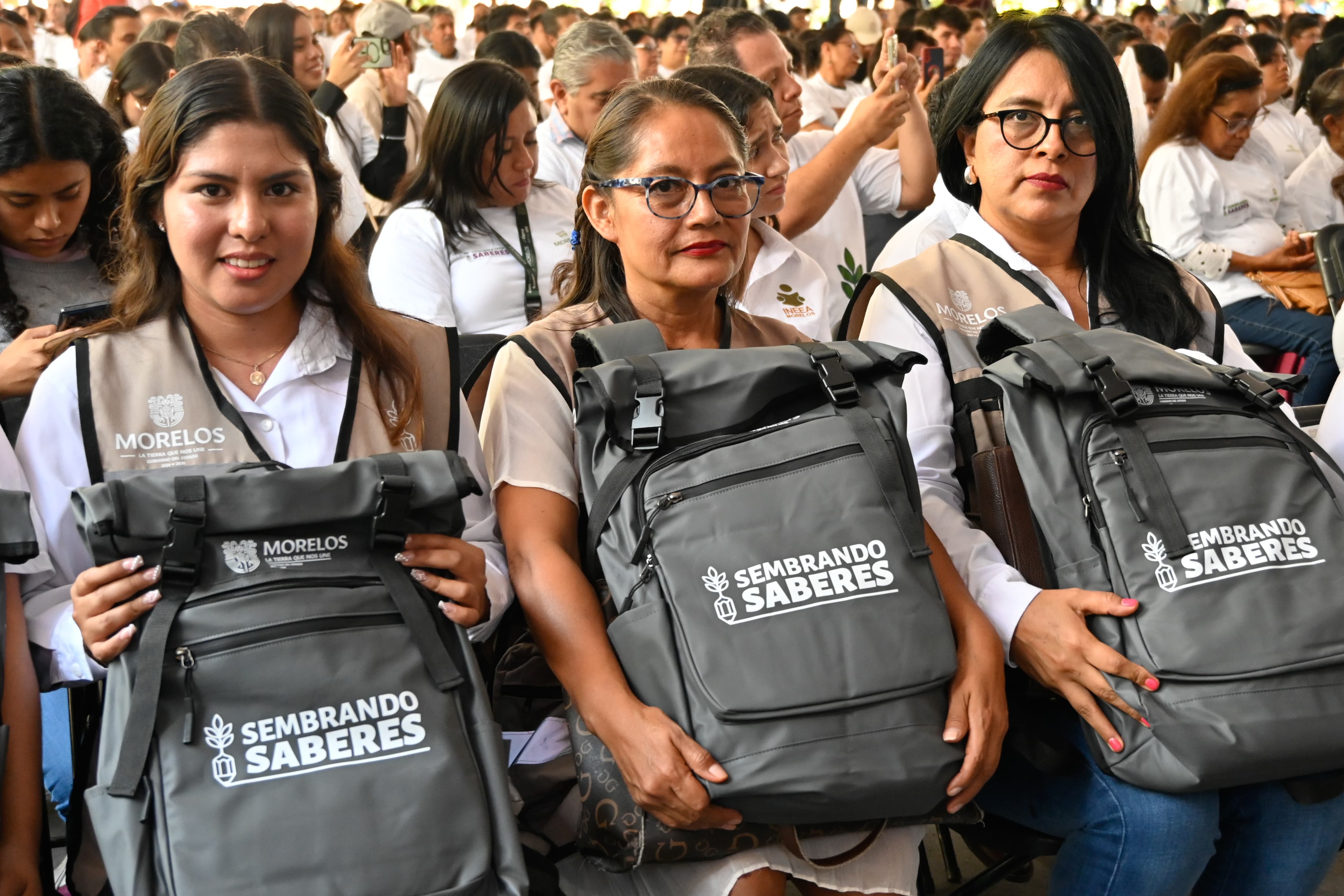 La “Plaza de Armas General Emiliano Zapata Salazar” fue el escenario donde la mandataria estatal y el secretario de Educación entregaron kits a las mujeres y hombres que conforman el “ejército” de alfabetizadores voluntarios, listos para recorrer todo el estado, equipados con libros, útiles escolares y la vocación de servir al pueblo de Morelos.