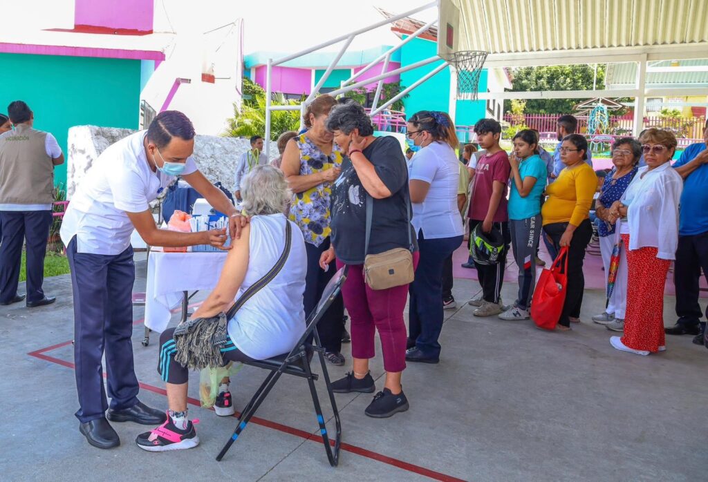 En tal sentido, Chalo Flores detalló que, en la cancha del DIF Municipal, se impartieron vacunas totalmente gratuitas contra enfermedades como Influenza, Covid-19, Neumococo y Tétanos, priorizando a niñas y niños menores de cinco años, mujeres embarazadas, personas con enfermedades crónicas y adultos mayores de 60 años.