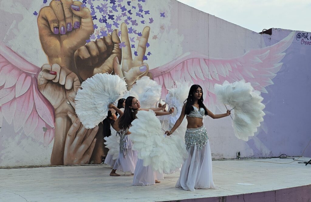 Por instrucciones del presidente municipal José Luis Urióstegui Salgado, la secretaria de Desarrollo Humano y Participación Social, Sandra Pinzón Sánchez, organizó esta jornada con la presentación de agrupaciones locales para llevar diversión y entretenimiento a las colonias y poblados de la capital morelense. El programa incluyó a Pinzón Artes Escénicas con danza contemporánea; Grupo Fenua con danza polinesia; “Con los Pies en el Aire” con danza árabe; y la Academia Mira Nrithya con danza clásica de la India, bajó la coordinación de Unidos por la Danza.