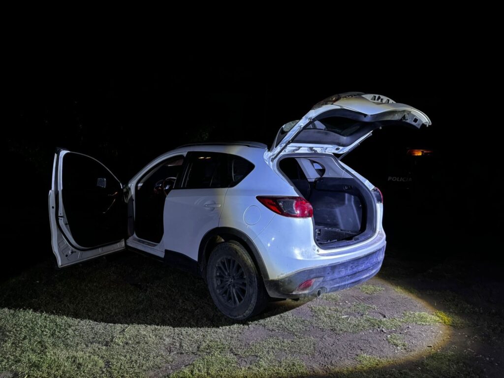 18. Una camioneta Mazda blanca sin placas de circulación.