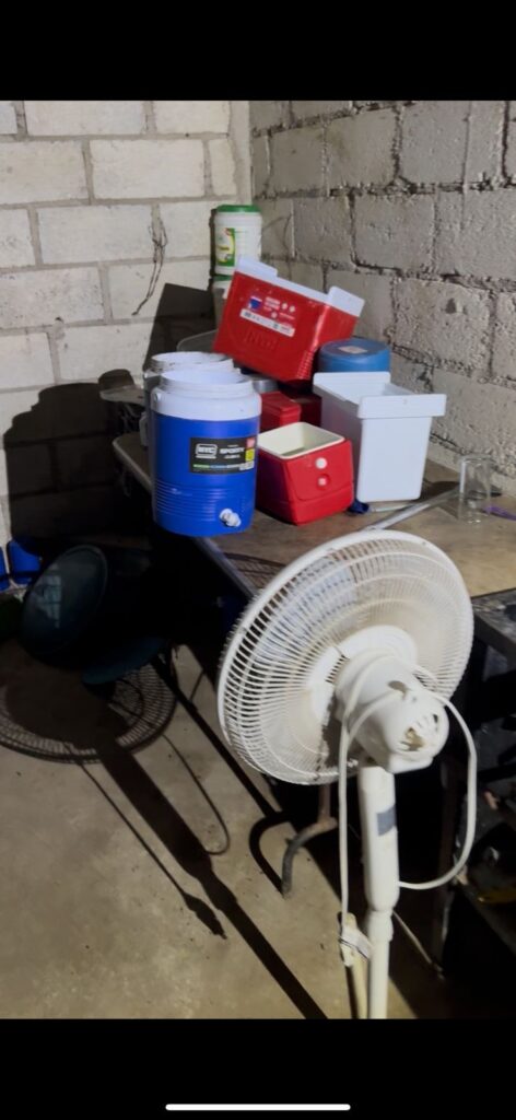 2. Una hielera cuadrada de cinco litros con una sustancia química precursora similar a la anfetamina.