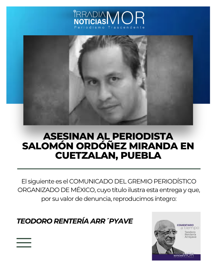 La noche de este lunes 23 de junio de 2025, el periodista independiente Salomón Ordóñez Miranda fue asesinado a balazos en el municipio de Cuetzalan, Puebla; pese a las labores médicas de emergencia que realizaron los paramédicos, lamentablemente falleció.