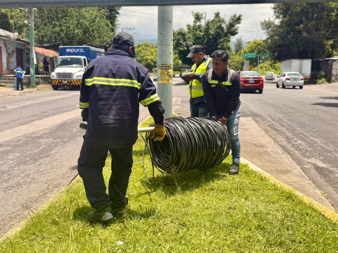 A la fecha, ya se concluyó el tendido de cableado en los postes, y actualmente el personal trabaja en el armado y conexión de las luminarias, a fin de garantizar un sistema de alumbrado eficiente y seguro.