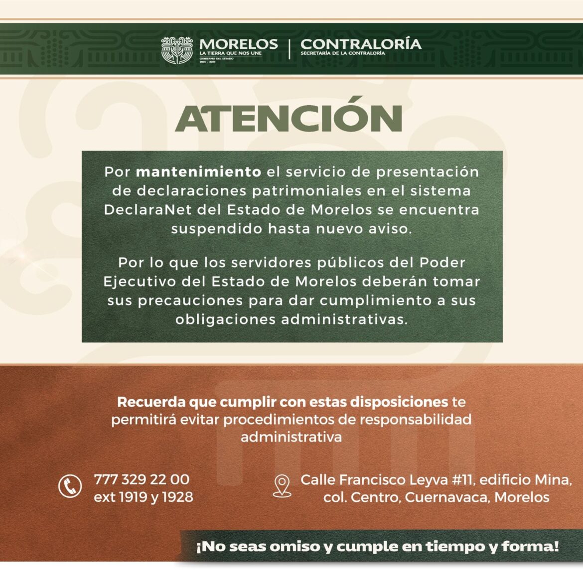 Finalmente, refirió que la declaración de situación patrimonial debe ser presentada de manera presencial en los formatos emitidos por el Comité Coordinador del Sistema Nacional Anticorrupción, los cuáles están disponibles en la página de internet: declaranet.gob.mx