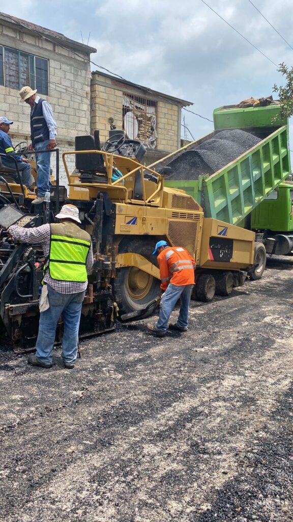 Los trabajos ya realizados hasta el momento incluyen el trazo y nivelación para vialidad con equipo de topografía; limpieza y deshierbe de hombros; construcción de muros de contención; compactación del terreno natural y la pavimentación asfáltica.
