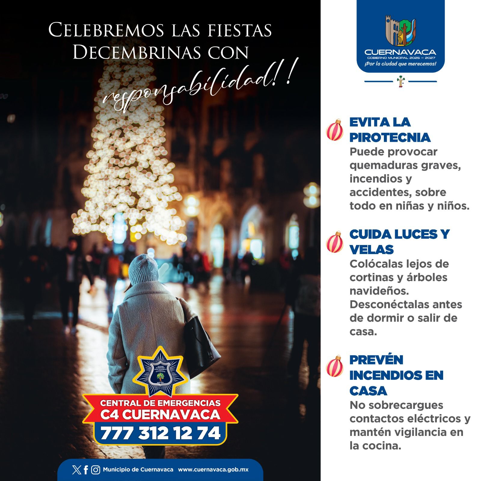 AYUNTAMIENTO DE CUERNAVACA EXHORTA A REFORZAR MEDIDAS DE PREVENCIÓN EN HOGARES DURANTE LA TEMPORADA DECEMBRINA