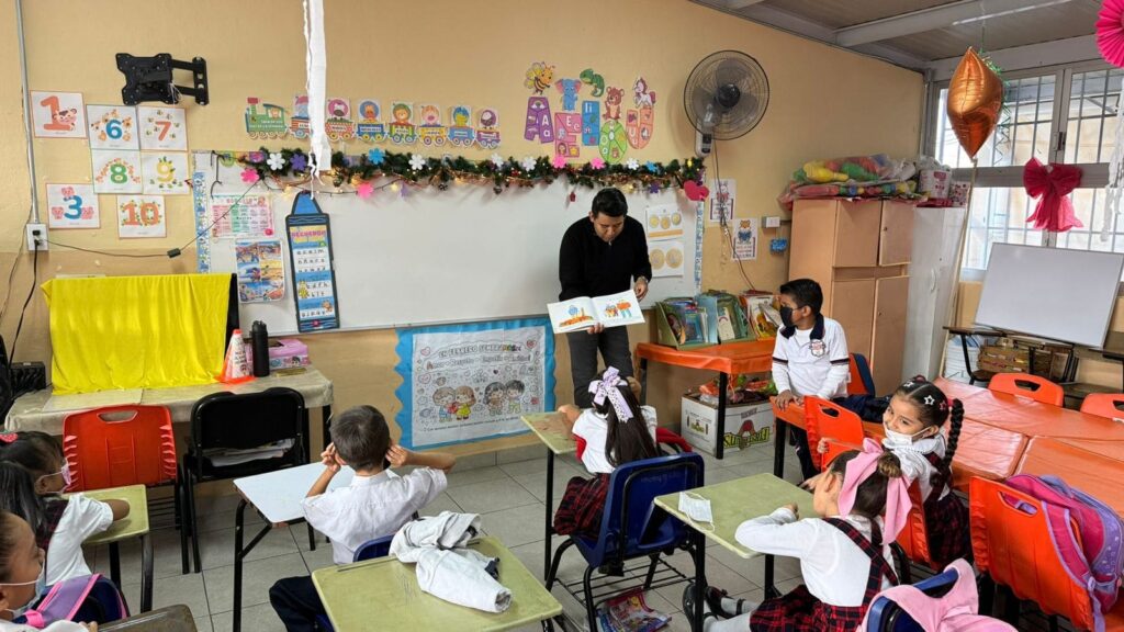 Como parte de las acciones de fomento educativo, se llevaron a cabo actividades de lectura dirigidas a estudiantes de primero y segundo grado, mediante la narración de cuentos y dinámicas participativas que buscan despertar el interés por los libros, estimular la imaginación y fortalecer las habilidades de comprensión lectora desde edades tempranas.