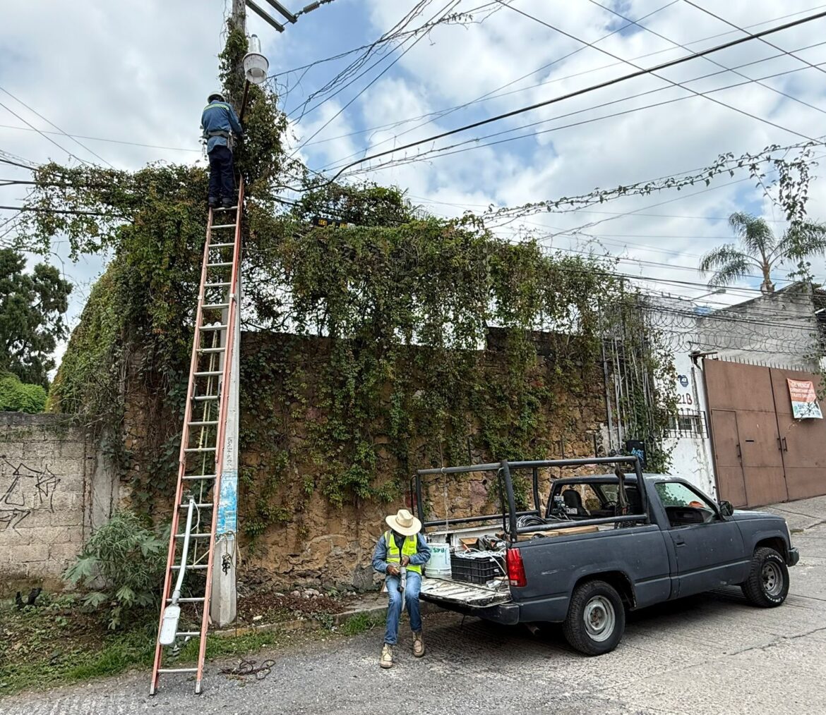 En atención directa a las necesidades ciudadanas y por instrucciones del presidente municipal de Cuernavaca, José Luis Urióstegui Salgado, la Secretaría de Desarrollo Sustentable y Servicios Públicos (SDSySP) llevó a cabo una jornada intensiva de mantenimiento y rehabilitación del servicio de alumbrado público en el poblado de Santa María Ahuacatitlán, como parte de la atención permanente a los 12 poblados originarios de la ciudad.