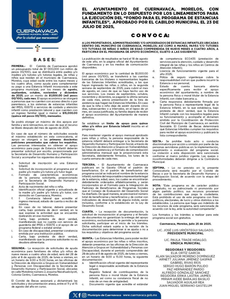 La convocatoria está publicada en las redes sociales oficiales del Municipio de Cuernavaca.
