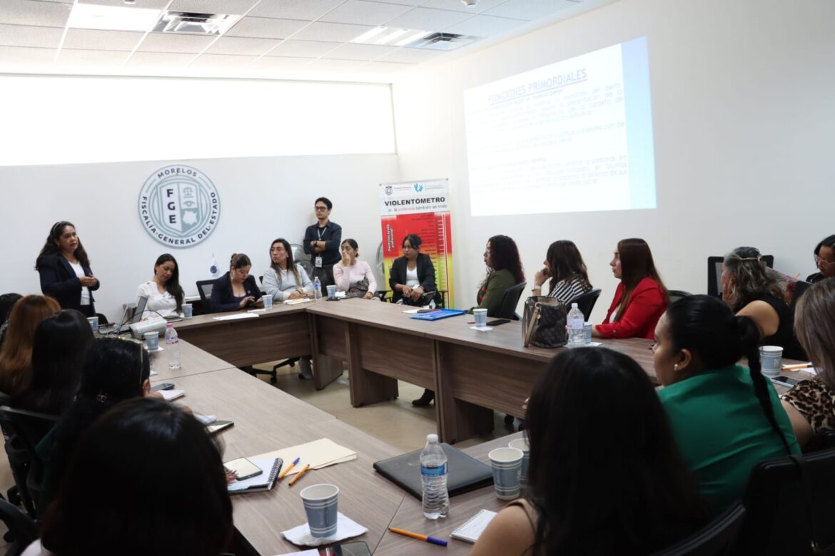 Con el objetivo de fortalecer y coordinar los trabajos en beneficio de las mujeres víctimas de violencia, la Fiscalía General del Estado (FGE) de Morelos, a través de la Fiscalía Especializada en Representación para Grupos Vulnerables y Asistencia Social, capacitó en materia de género a prestadoras de servicios profesionales de los Módulos de Atención Inmediata para la Alerta de Violencia de Género (AVG), adscritos a la Secretaría de las Mujeres del Poder Ejecutivo.