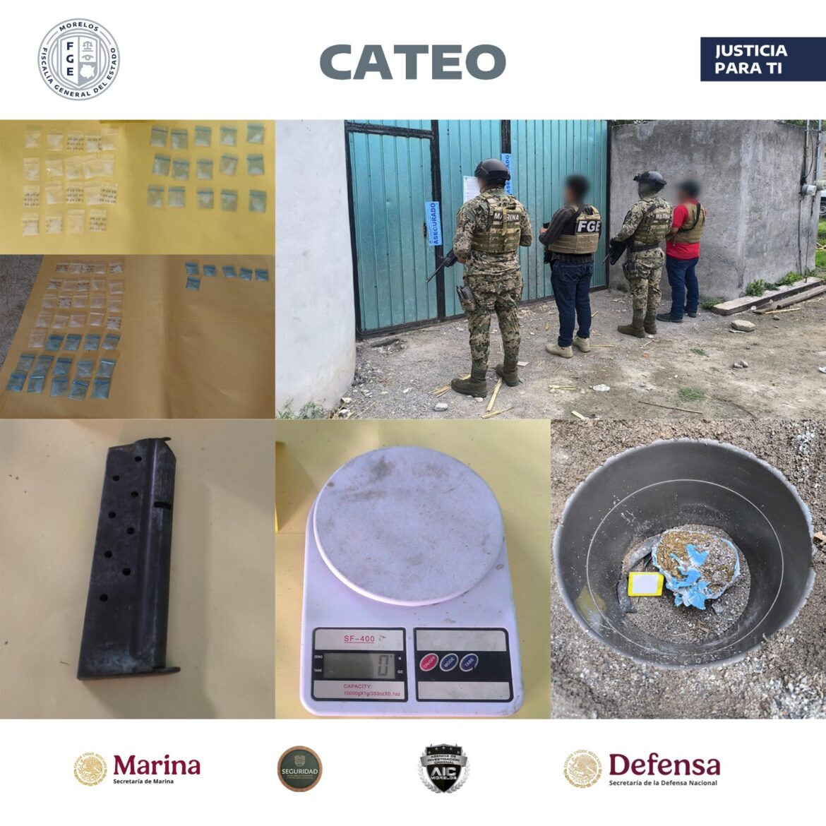 Elementos de la Agencia de Investigación Criminal (AIC) de la Fiscalía Regional Sur Poniente ejecutaron órdenes de cateo en dos inmuebles del poblado de Tlatenchi, municipio de Jojutla, viviendas que, según las investigaciones, eran utilizadas por sus moradores para almacenar y distribuir estupefacientes.