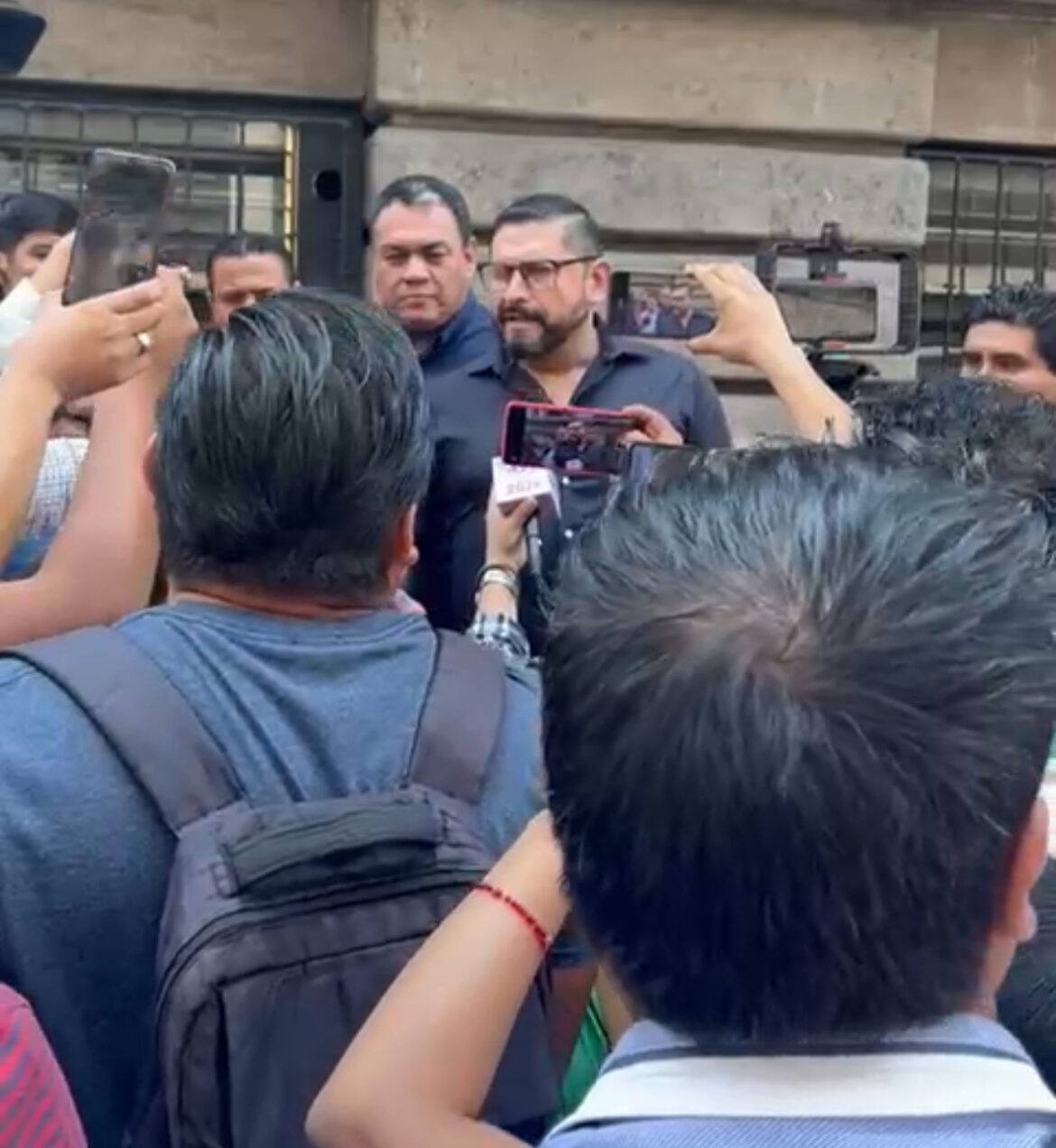 José Israel Calderon Reyes, subsecretario y Erick Santiago Romero, director de Gobierno, hicieron acto de presencia en Plaza de Armas para atenderlos, sin embargo, la insistencia de ser recibidos por el representante del Ejecutivo subió de tono.