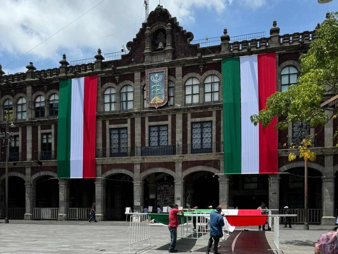 En el marco del CCXIV Aniversario de la Independencia de México, el Gobierno del estado de Morelos vistió la fachada de la sede del Poder Ejecutivo con pendones verde, blanco y rojo.