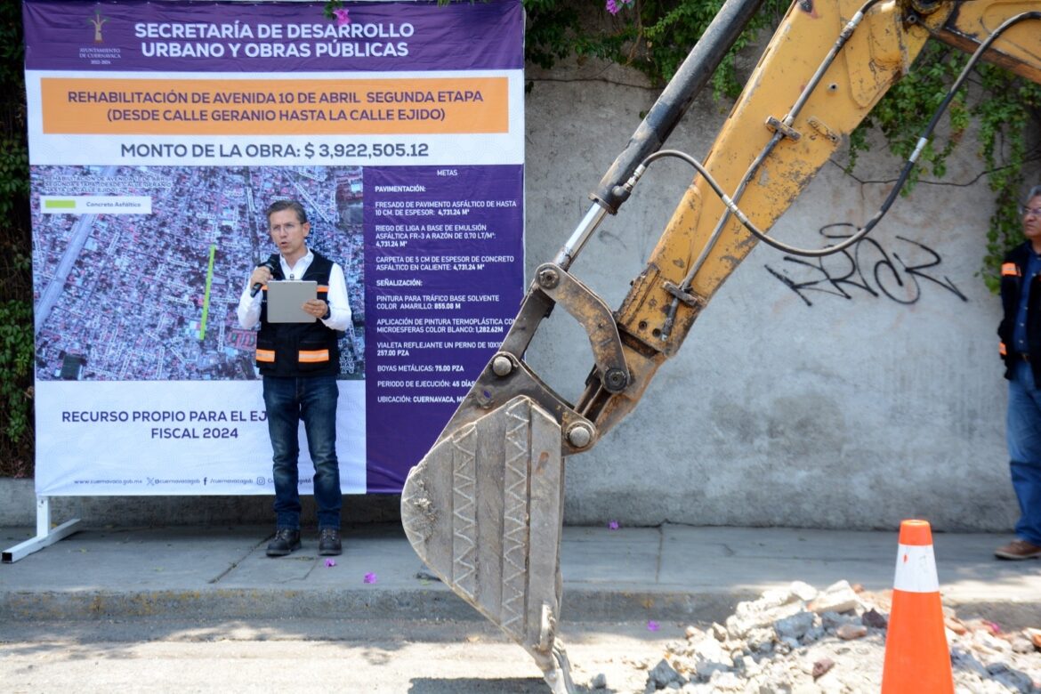 A partir del próximo lunes 06 de mayo y durante un periodo estimado de 45 días inician los trabajos nocturnos de fresado y asfalto de la avenida 10 de abril en la colonia Vicente Estrada Cajigal del municipio de Cuernavaca, que en esta segunda etapa parten desde calle Geranio hasta calle Ejido, mejorando la conectividad en Cuernavaca con otros poblados y municipios.