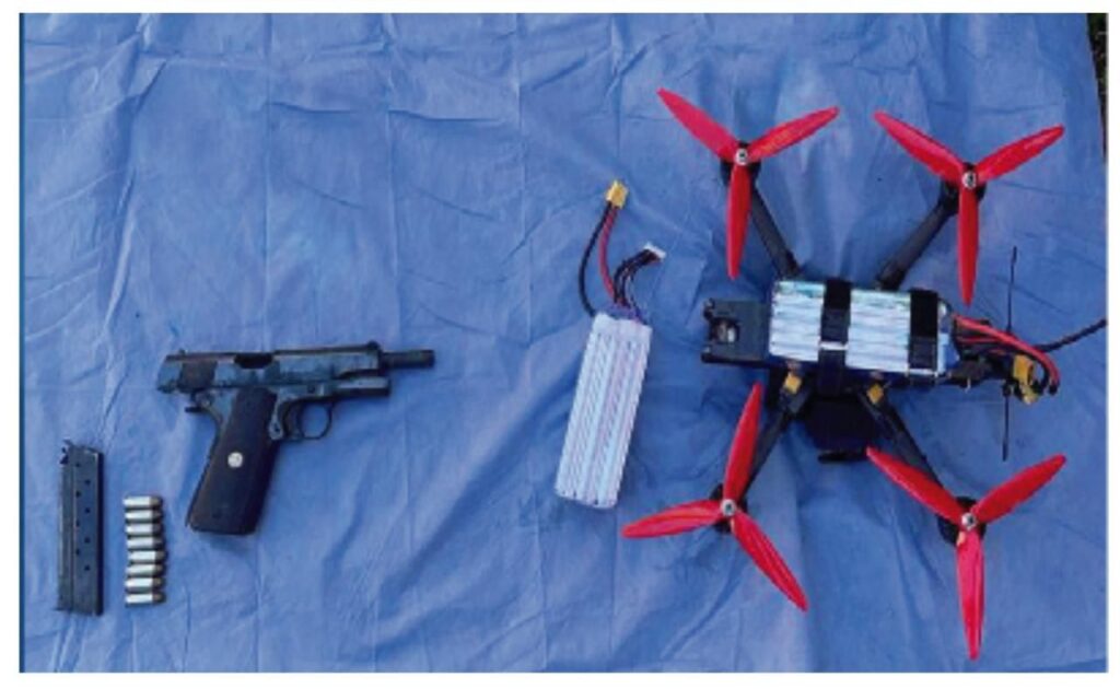 2.- Un dron negro sin identificación, con adaptaciones artesanales para la carga de peso y baterías adicionales.