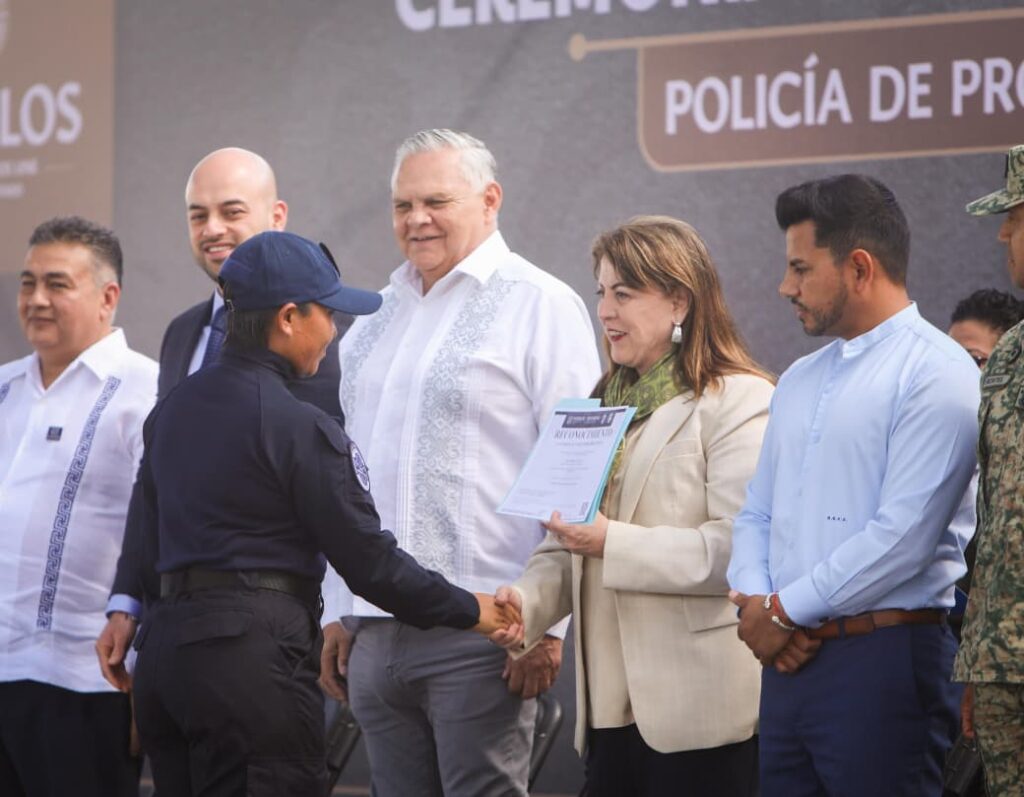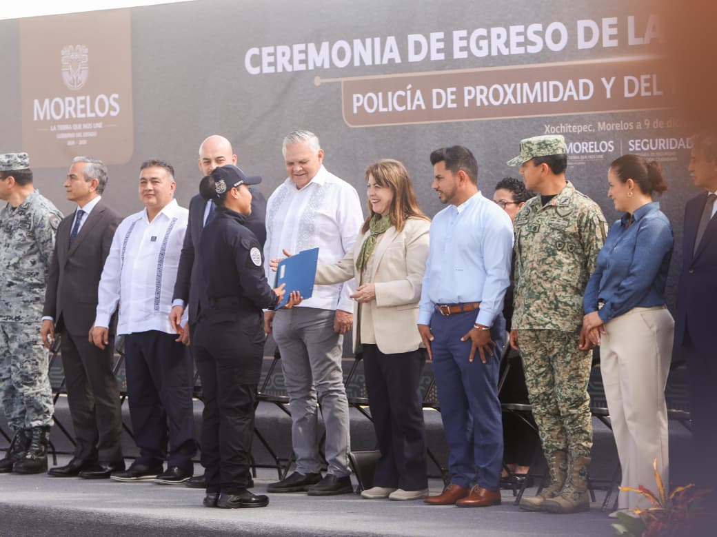 La gobernadora del estado de Morelos, Margarita González Saravia, presidió la Ceremonia de Egreso de la Segunda Generación de Policía de Proximidad y del Personal en activo 2025, donde exhortó a las y los integrantes de las corporaciones de seguridad pública a “servir con honor, lealtad y humanidad”, al tiempo que, refrendó el respaldo permanente de su administración a su labor.