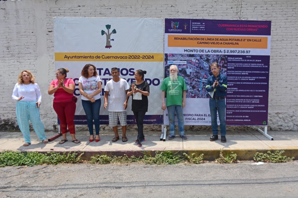 El Ayuntamiento de Cuernavaca enfoca esfuerzos en la rehabilitar líneas de agua potable en la ciudad, como ocurre con la obra en calle Camino Viejo a Chamilpa de la colonia Tlaltepexco, la cual con una inversión de dos millones 997 mil 238.97 pesos de recursos propios municipales abonará a mejorar la distribución del vital líquido que ha sido una prioridad para la administración.
