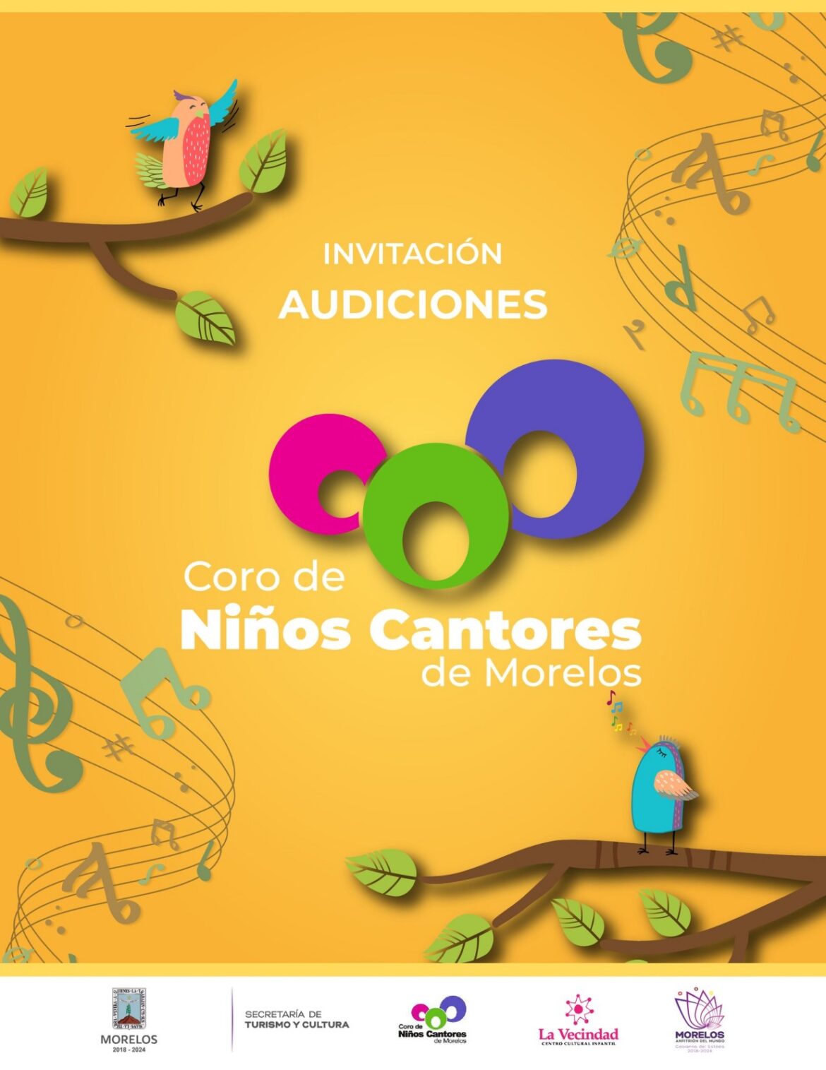 La Secretaría de Turismo y Cultura (STyC), a través de la Dirección General de Iniciación Artística y Proyectos Especiales, invita a niños y niñas a formar parte del Coro Preparatorio de Niños Cantores de Morelos, en el que aprenderán técnicas para educar la voz cantada, conocerán canciones nacionales y de otros países, podrán convivir con niñas y niños de coros de México y el mundo, además de participar en giras y festividades locales y nacionales.