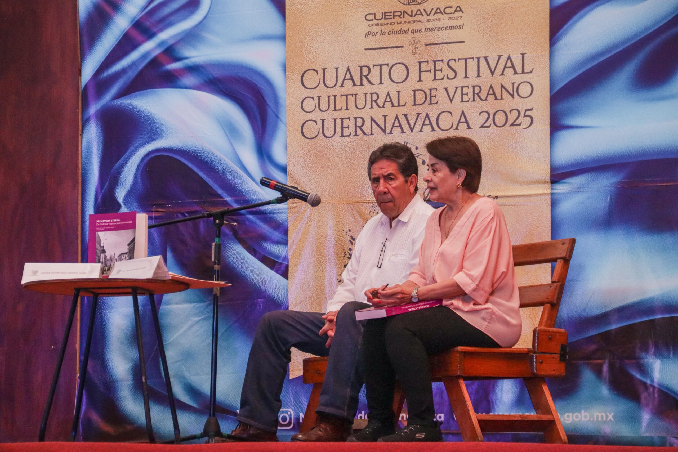 En el marco del tercer día del Festival Cultural de Verano, el Museo de la Ciudad de Cuernavaca fue sede de un emotivo conversatorio en torno al libro «Primavera Eterna. De historia y crónica de Cuernavaca”, una obra que recupera la riqueza histórica y el alma de la capital morelense.