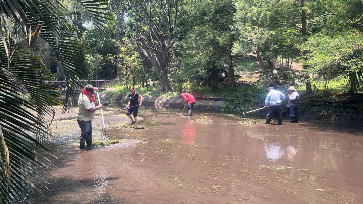 Personal del Parque trabajó en la limpieza y mantenimiento del cuerpo de agua conocido como espejo de agua, donde retiraron residuos de hojarasca, sedimentos y vegetación distinta, con la finalidad de incrementar la oxigenación e incrementar el nivel del agua.