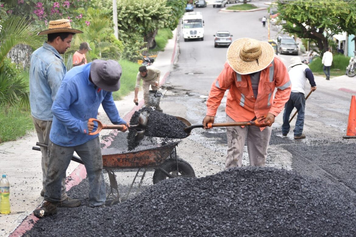 Por instrucciones del presidente municipal de Jiutepec, Rafael Reyes, personal de la Dirección de Superintendencia del Gobierno con Rostro Humano continúa con los trabajos de mantenimiento de la carpeta asfáltica de diferentes calles y vialidades del municipio.