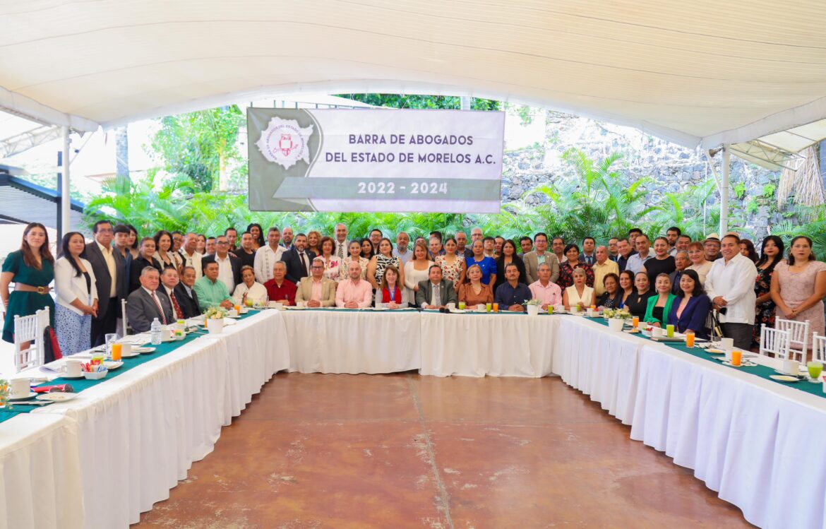 En compañía de Fabián García Ramírez y Laura Guadalupe Sánchez, respectivos presidente y vicepresidenta de la Barra de Abogados del Estado de Morelos A.C., González Saravia manifestó que con la participación de este gremio se ha forjado el desarrollo del estado, en los diversos órdenes de gobierno, dependencias y poderes por lo que su experiencia será fundamental para generar un marco legislativo humanista que promueva el bienestar social.