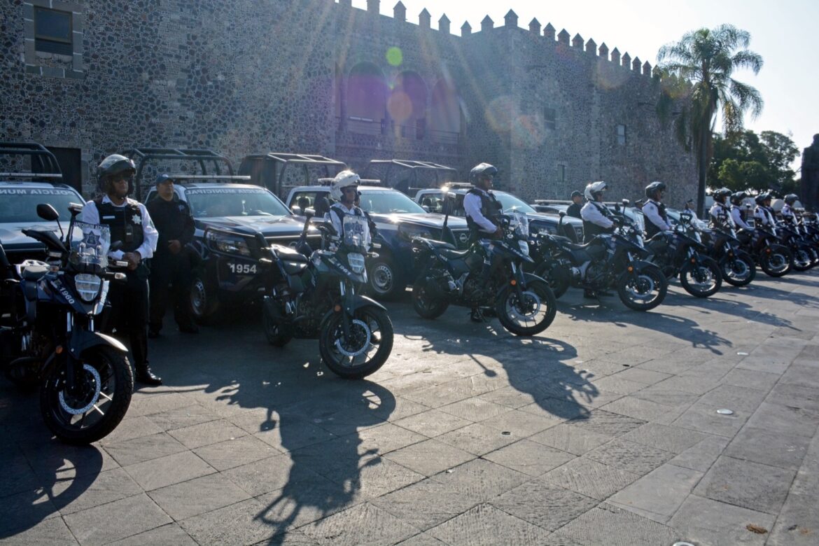 Desde marzo del año pasado el Ayuntamiento de Cuernavaca ha cumplido con una entrega histórica de vehículos y equipamiento a los policías municipales, como fue en el Parque Siqueiros donde se otorgaron las primeras 10 patrullas y en marzo del 2023 en el parque Alameda Solidaridad se entregaron 12 motopatrullas, y el mismo mes se entregaron otras 10 patrullas en la explanada del Palacio de Cortés.