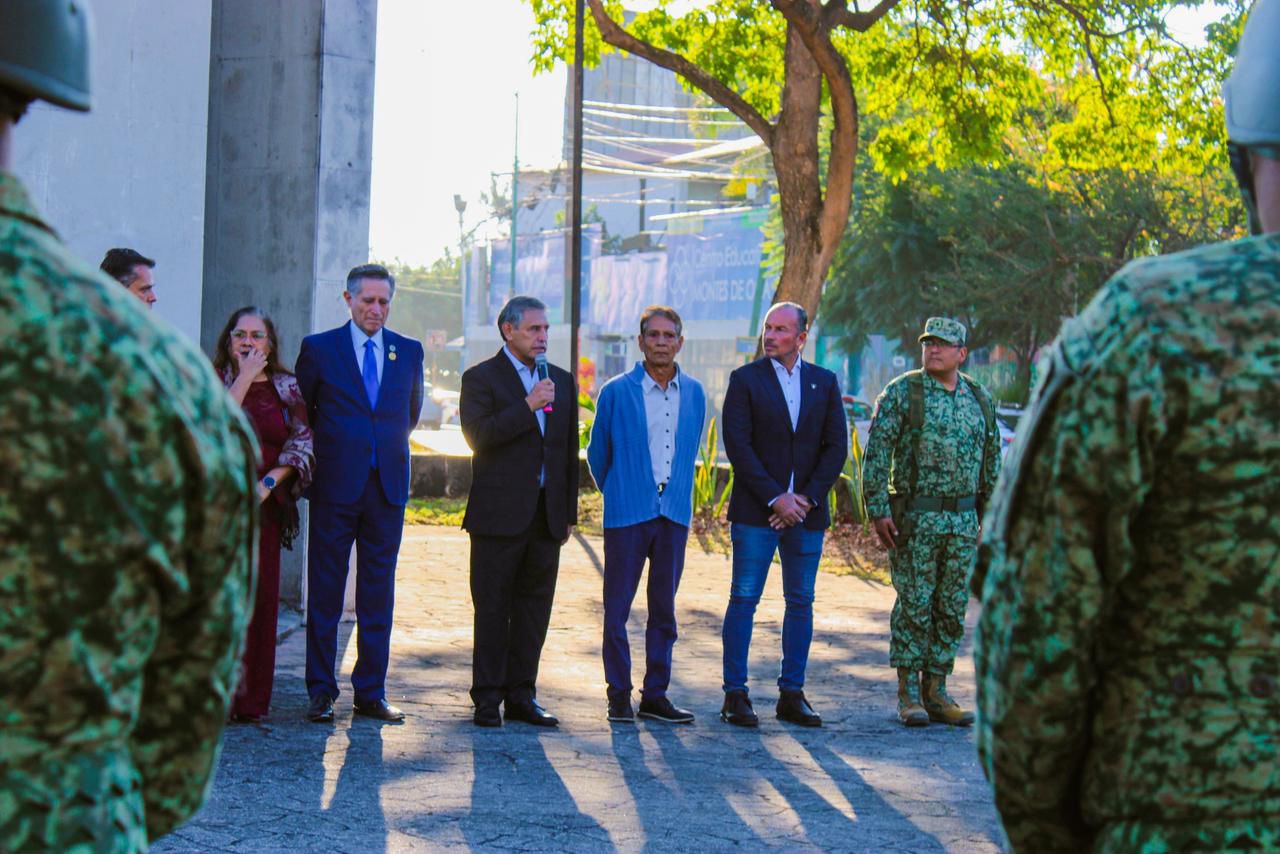 Acompañado por integrantes del Cabildo y del gabinete legal y ampliado, el alcalde participó en los honores a cargo de elementos del 21° Batallón de Infantería, donde se realizó la incineración del lábaro patrio conforme al artículo 54 Bis de la Ley sobre el Escudo, la Bandera y el Himno Nacional, para continuar con el abanderamiento de la escolta y la toma de protesta correspondiente.