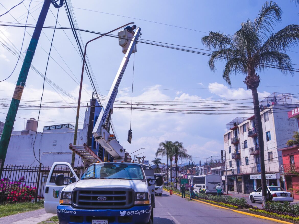 En tanto, los trabajos han tenido presencia también en las avenidas Camino Antiguo a Ocotepec, Ruiz Cortines, el Ejido de Acapantzingo, Leandro Valle, el Circuito Adolfo López Mateos, Reforma, Nueva Inglaterra y La Lagunilla; se plantean instalar un total de cinco mil luminarias en arterias principales.