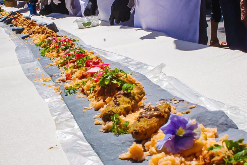 La longitud fue certificada por un notario público, quien dio fe del cumplimiento de los lineamientos establecidos para validar la marca alcanzada, desde la elaboración de la tortilla hasta su medición oficial. Tras la certificación, el taco fue compartido con las y los asistentes en un ambiente familiar que incluyó actividades culturales y artísticas con apoyo de la Secretaría de Educación estatal.