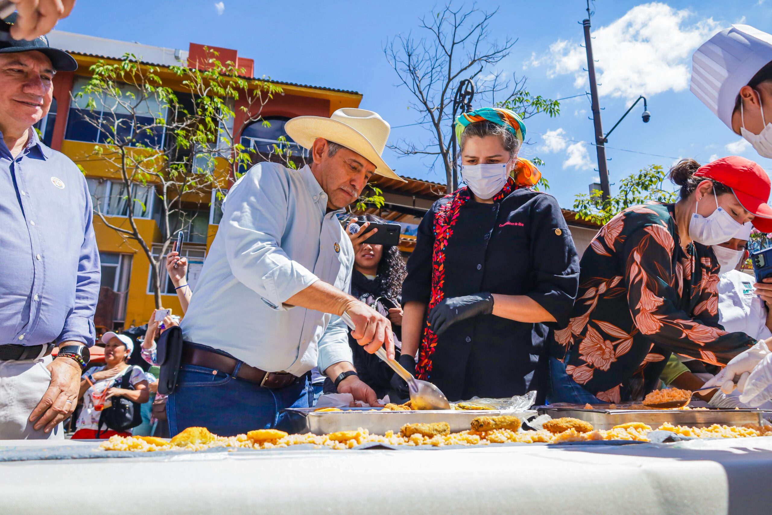 En ese punto se realizó el armado final del taco monumental con guisados tradicionales, arroz morelense y rajas preparadas, así como con propuestas innovadoras cocinadas por cocineras y cocineros locales, resaltando la riqueza culinaria del municipio. Cientos de voluntarias y voluntarios participaron en la logística y preparación, entre estudiantes de gastronomía, integrantes del Cabildo y Gabinete, empresarios y ciudadanía en general, demostrando que la suma de esfuerzos fortalece la cohesión social y preserva las tradiciones que dan identidad a Cuernavaca.