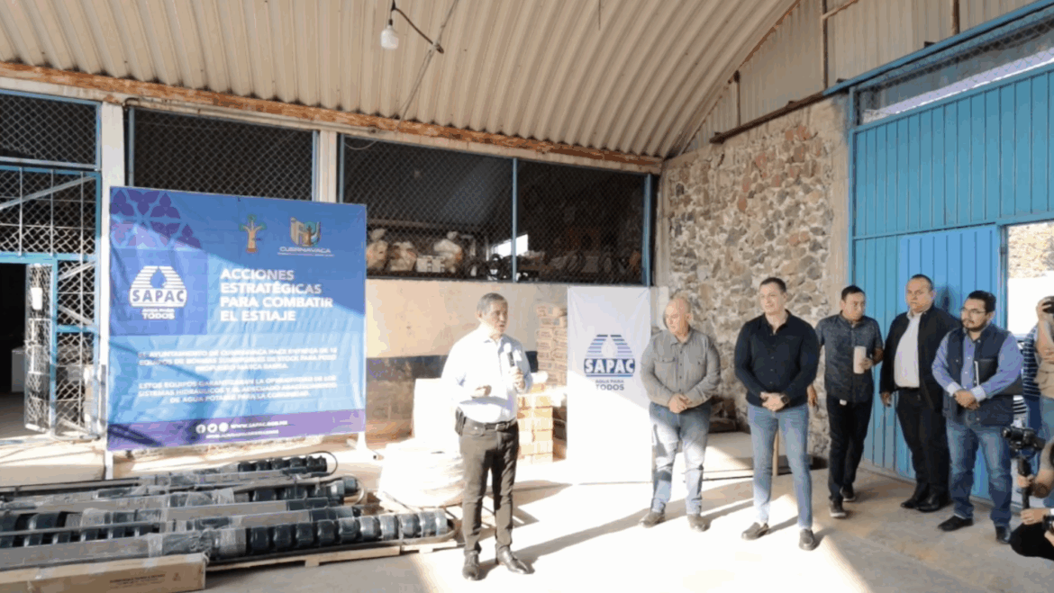 Como parte de las acciones estratégicas para enfrentar la temporada de estiaje, el presidente municipal de Cuernavaca, José Luis Urióstegui Salgado, encabezó este miércoles la entrega de 12 equipos de bombeo sumergibles para pozos profundos al Sistema de Agua Potable y Alcantarillado de Cuernavaca (SAPAC), con el objetivo de fortalecer la operatividad de los sistemas hidráulicos y garantizar el suministro adecuado de agua potable a la población.