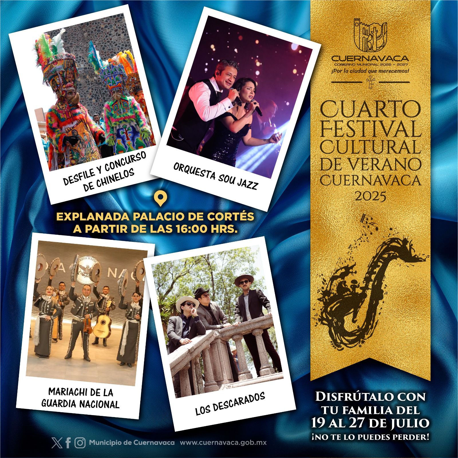 • Del 19 al 27 de julio, no te pierdas el Cuarto Festival Cultural de Verano Cuernavaca 2025. ¡Un encuentro para toda la familia!