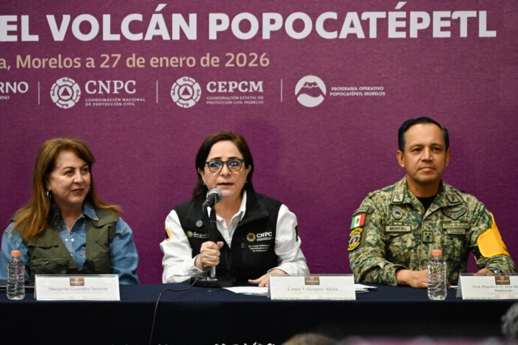 A su vez, Laura Velázquez explicó que el Gobierno de México, que encabeza por la Presidenta Claudia Sheinbaum Pardo, mantiene una revisión integral en las entidades que colindan con el volcán: Estado de México, Puebla, Tlaxcala y Morelos; como parte del Plan Popocatépetl, se evalúan factores de riesgo y se afina la logística necesaria para una posible evacuación.