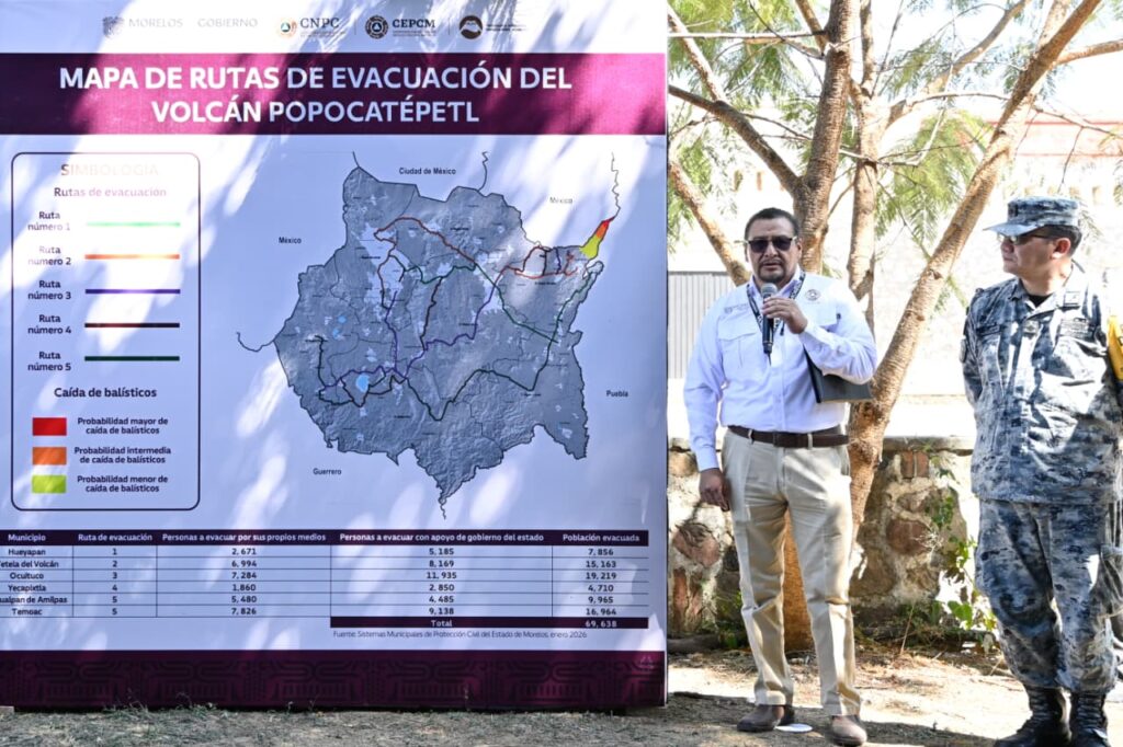 El anuncio se realizó en el Gimnasio Auditorio de la Universidad Autónoma del Estado de Morelos (UAEM) Campus Chamilpa, recinto designado como refugio temporal en caso de evacuación. Previamente, las autoridades recorrieron la Ruta de Evacuación número 2 Tetela del Volcán–Cuernavaca, donde verificaron condiciones físicas, señalización, conectividad vial y seguridad.