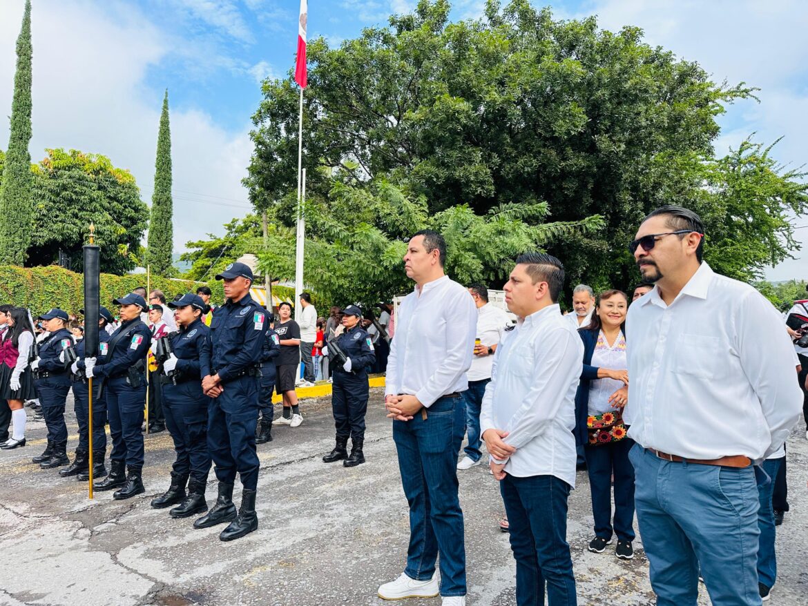 El desfile tradicional que recorrió las principales calles de la unidad habitacional José María Morelos y Pavón, estuvo integrado por 23 contingentes, iniciando con la ceremonia donde se desfundaron banderas, para dar paso al desfile con la escolta de Seguridad Pública, la banda de guerra Arroceros de Jojutla, el presidente municipal Alan Martínez García, el diputado federal por Morelos Juan Ángel Flores Bustamante, la sindica Amada Martínez Morán, la regidora Patricia Luna Domínguez, el regidor Alberto Salgado Pérez y el ayudante municipal David Jiménez Chávez.
