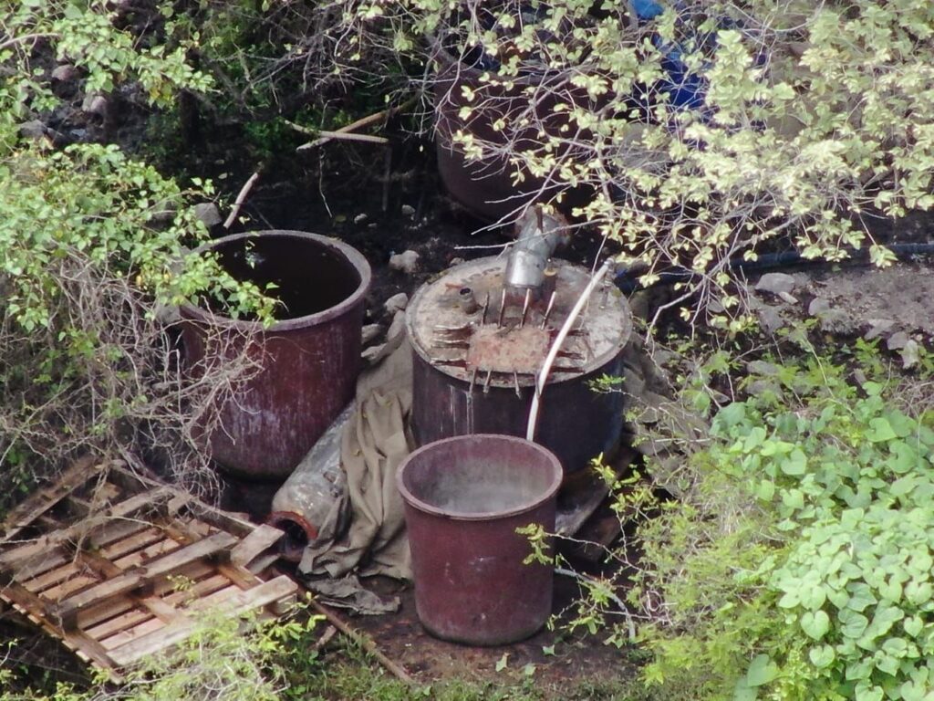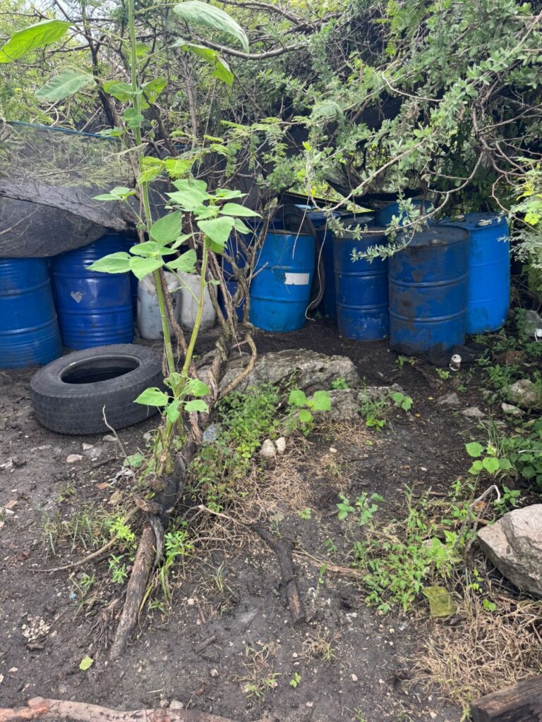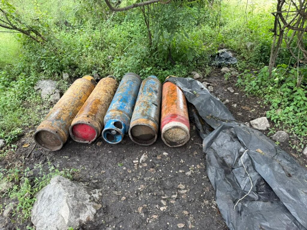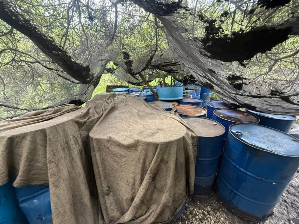 Los predios contaban con conexiones eléctricas improvisadas, mangueras de suministro de agua conectadas a aljibes tipo alberca camuflados, con capacidad de siete mil litros cada uno, y una fosa séptica.