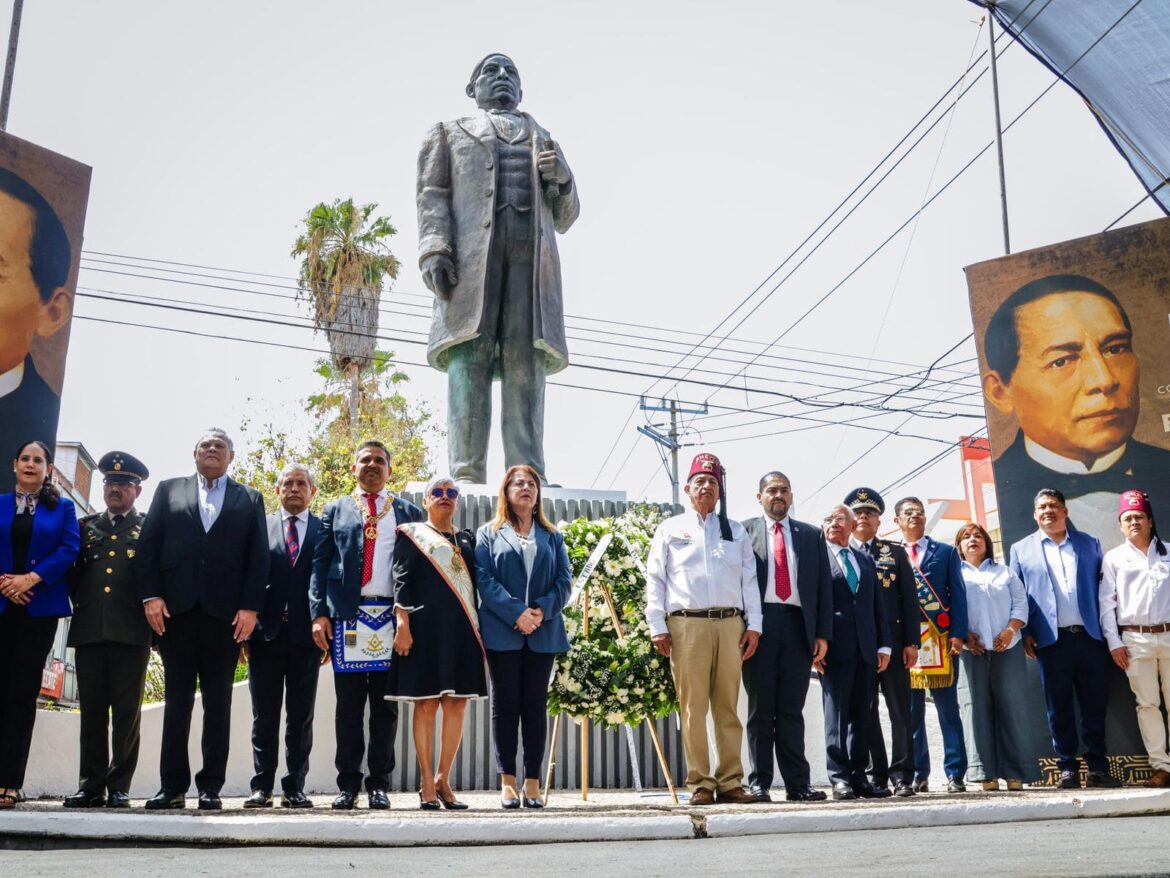 Al término del acto, las autoridades presentes realizaron una guardia de honor y colocaron una ofrenda floral en el Monumento a Benito Juárez, como muestra de respeto y admiración hacia su memoria y su legado.